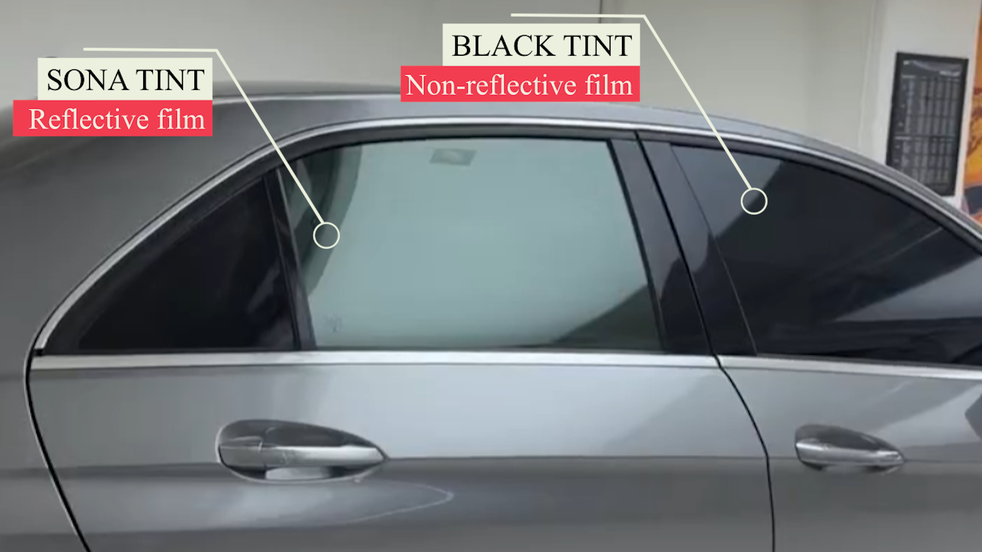 Mercedes-Benz E350 Non-Reflective Tint vs Reflective Tint: What’s the Difference?Today, I’ll be showing you the difference when switching from black tint to Sona tint. -
